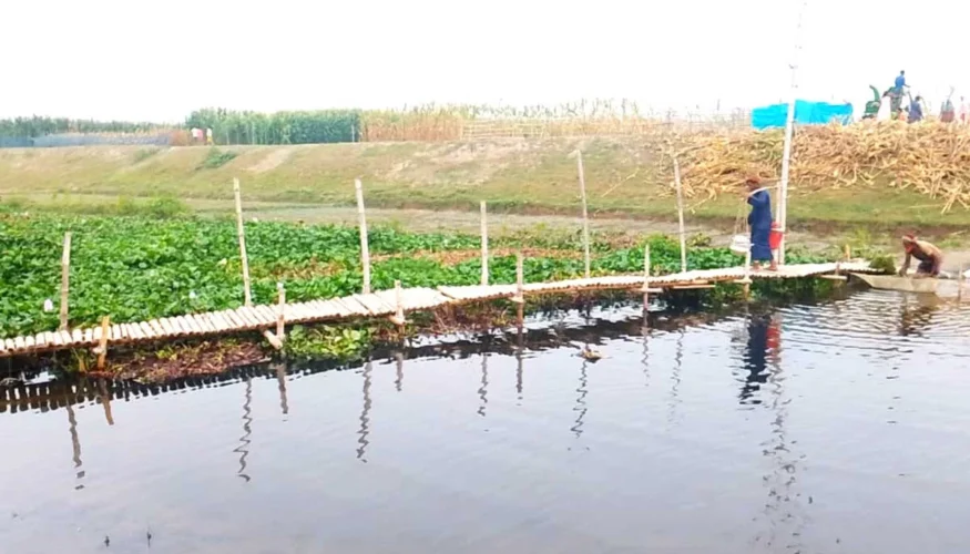 বগুড়ায় নদী পারাপারে ঝুঁকিপূর্ণ বাঁশের সাঁকোই ভরসা!